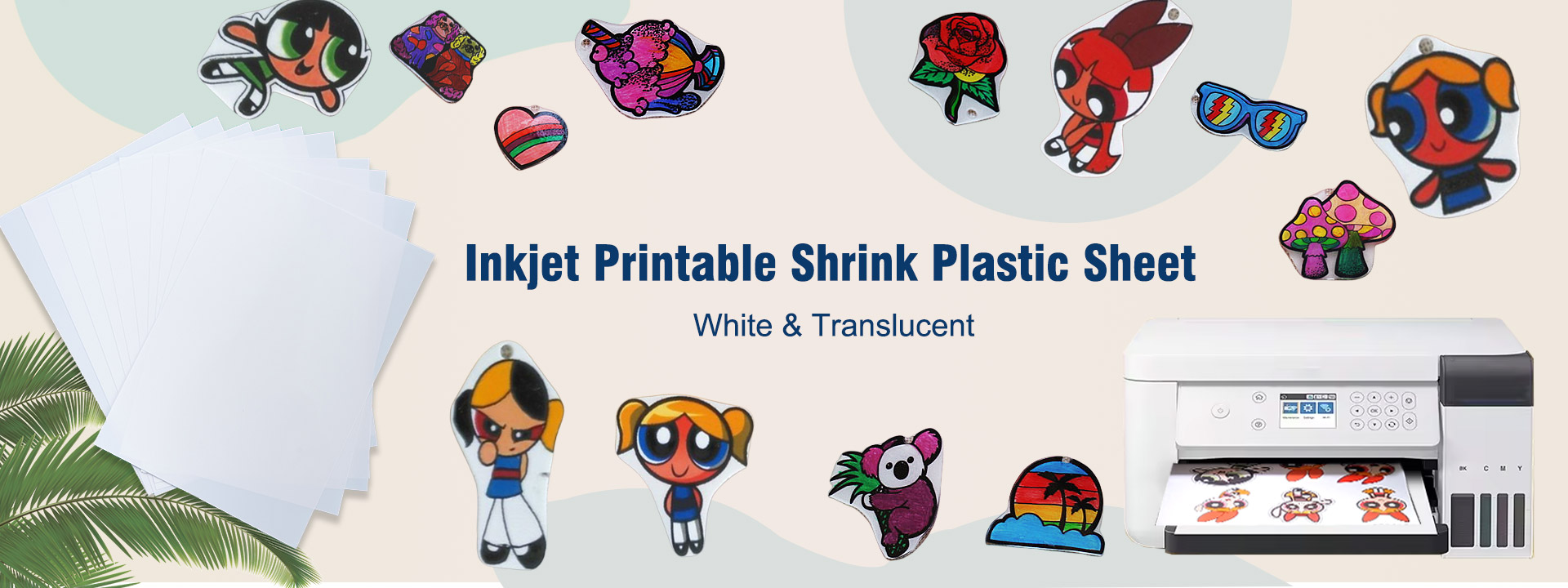 Shrink art plastic,inkjet printable shrink sheet,sanded shrink film,clear shrink film,pre-printed shrink sheet,colors shrink art plastic,customized shrink sheet.